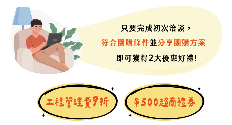 1. 團購方案適用於尚未交屋之新建案(交屋時間 2026.01.01 - 2026.12.31),不得與其他優惠活動併用。